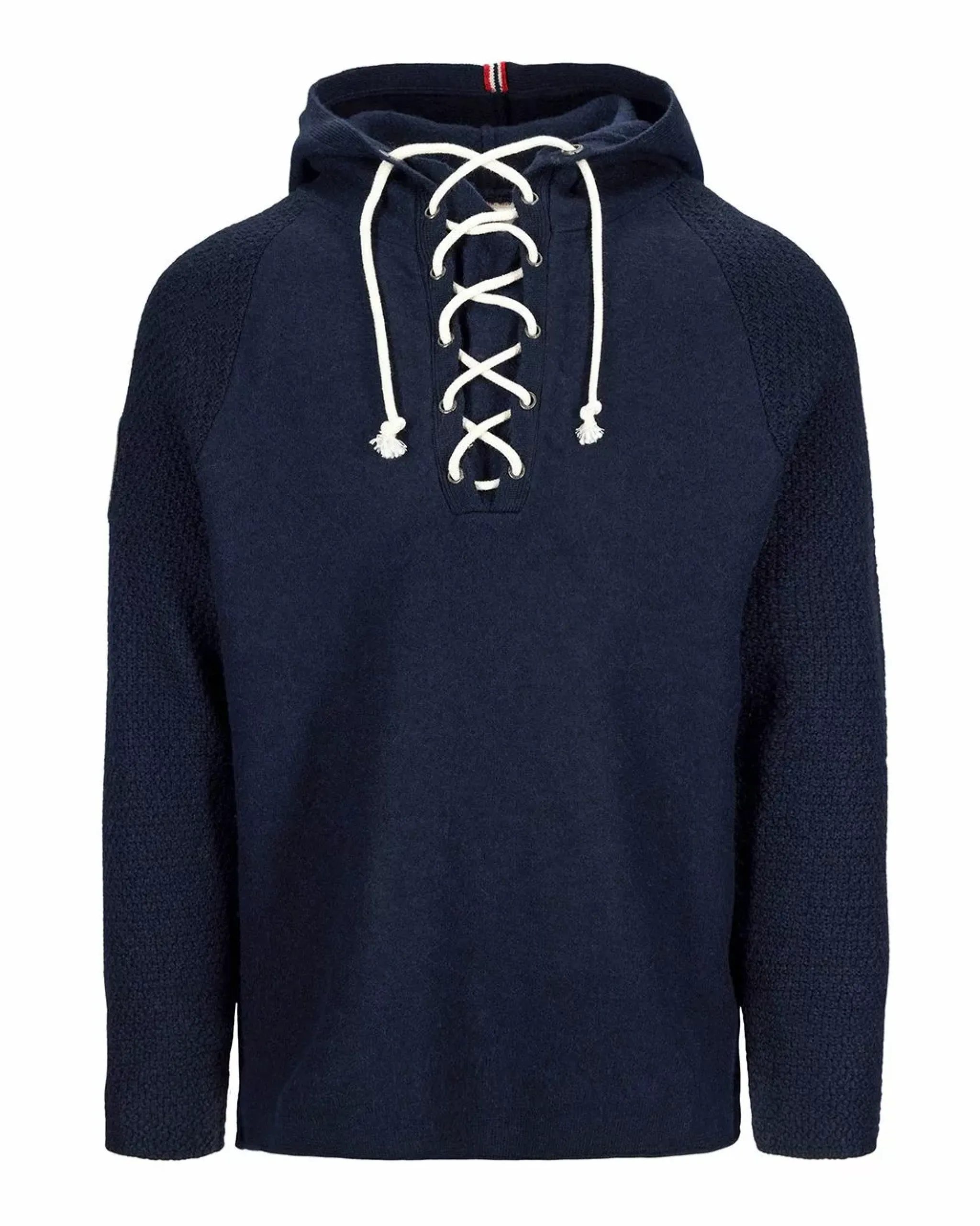 The favourite boiled hoodie for everyday outdoor in 100% Merino wool. This sweater is knitted extremely big and then boiled back to its right size. This technique to make clothing for mountain people and seafarers alike was a great way to obtain unequalled warmth, water and wind resistance.